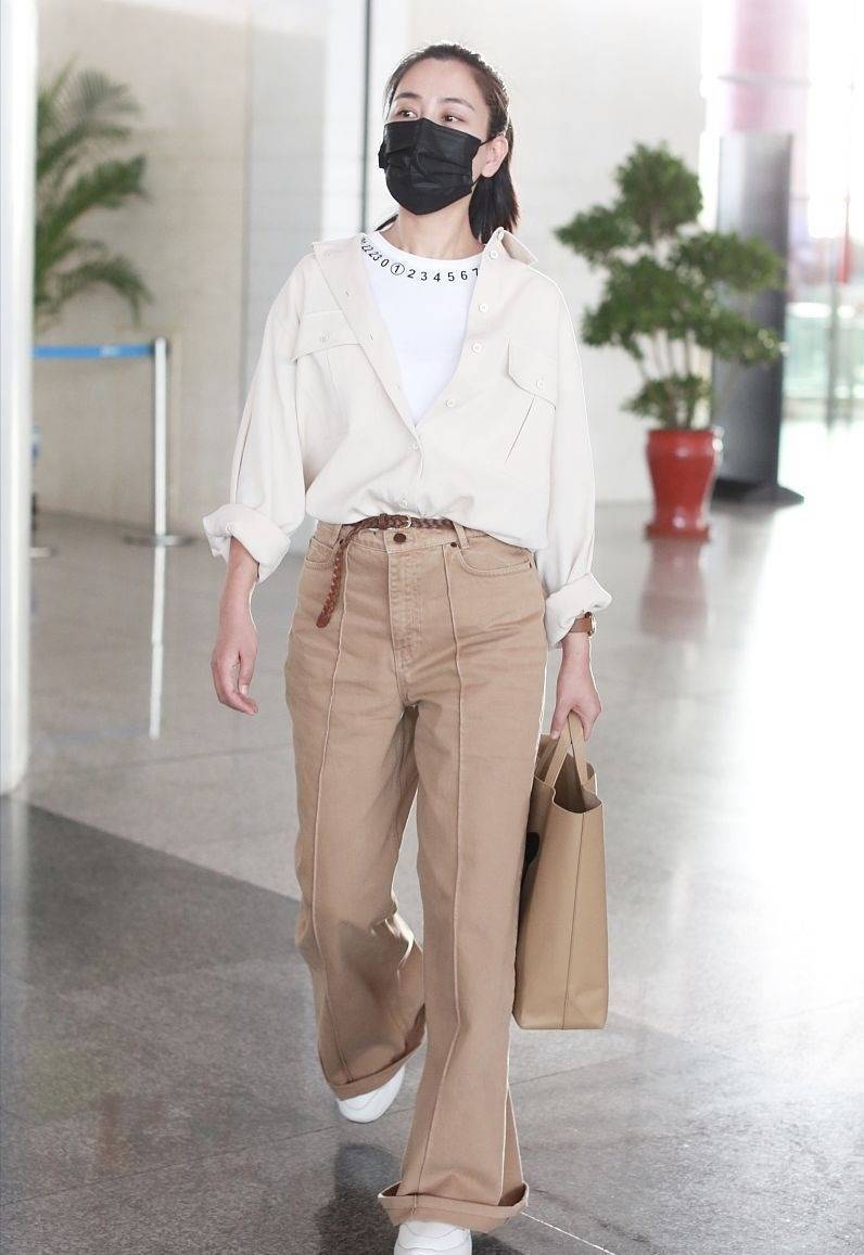 说到在秋天出镜率最高的单品,很多人都会想到衬衫,比如马苏给自己搭配的米白色衬衫也属于经典款,和纯白色的衬衫相比,这种米白色更为柔和,穿在身上也很适合肤色暗沉的小仙女,可以调节我们的皮肤,达到减龄的效果。马苏气质全开,衬衫搭配阔腿裤走机场,意外美出了新高度,超洋气。